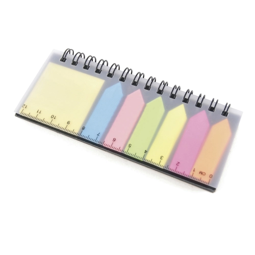 Spiral bound notepad with additional post its, flags & ruler